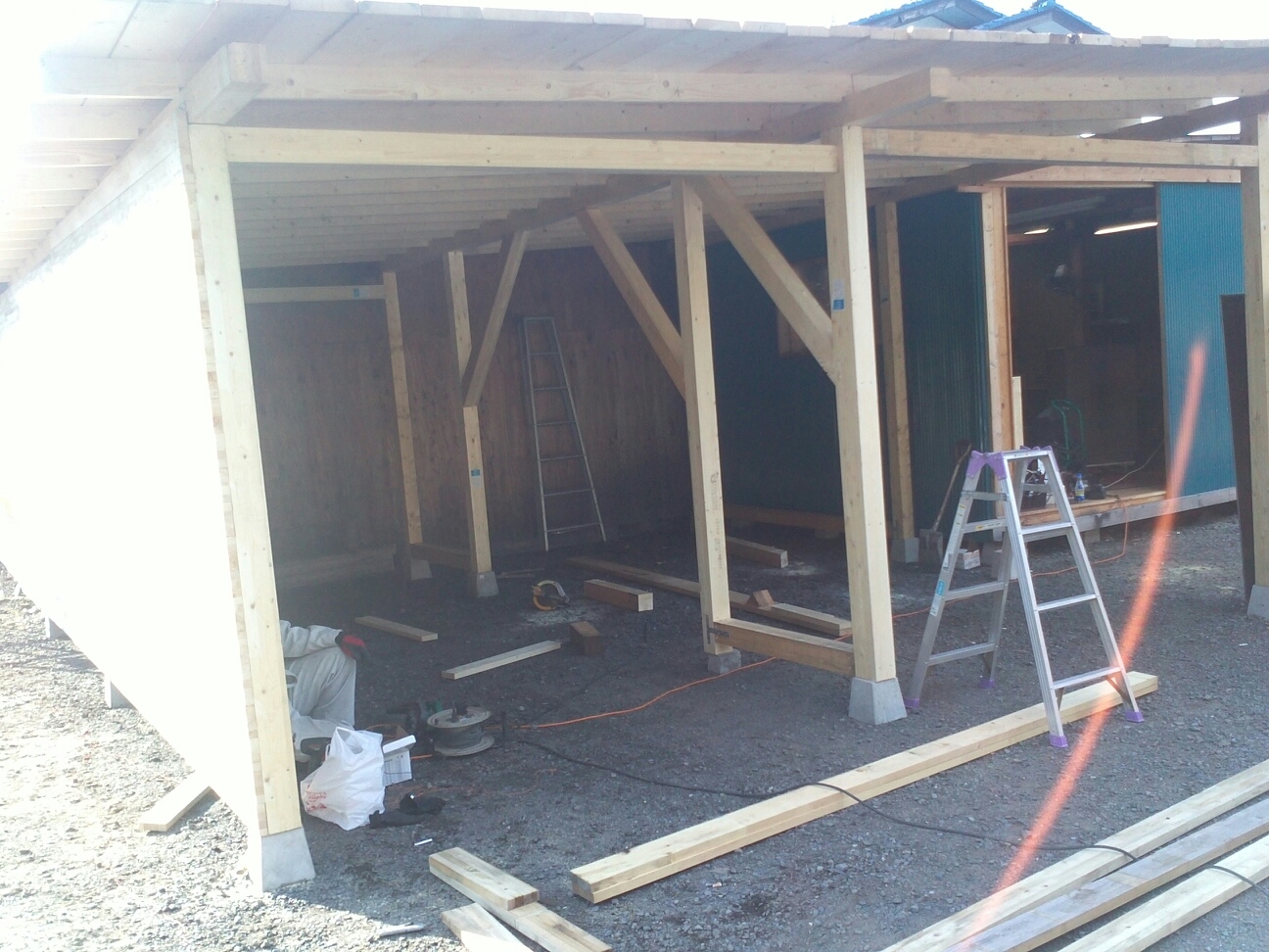 屋根の板はりと側面の板はり終了~